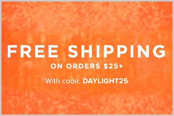 Only on Sunday, 11/5/23 customers will get FREE SHIPPING on orders $25+ through your online store. Share code: DAYLIGHT25